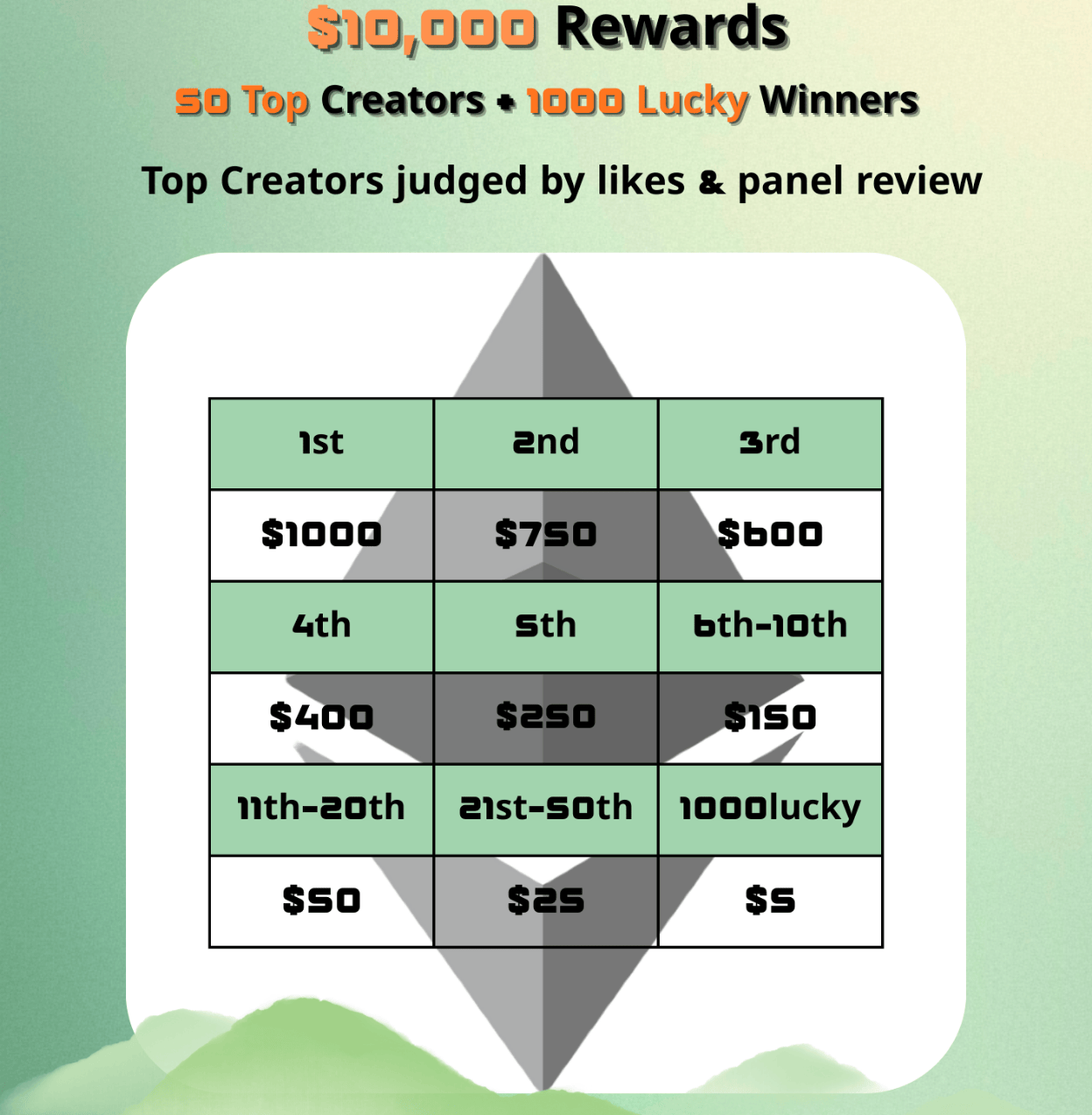 ● 50 位优胜者 将从 X、TikTok 和 StarSphere 应用中评选,综合 点赞数与评审团打分。