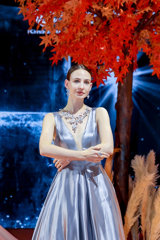 金伯利钻石于当晚倾情呈献了一场流光溢彩的天然钻石珠宝大秀。秀场开篇,主钻重达 5.01 克拉的「玉兰芳华」率先登场,以清雅灵动的设计揭开帷幕;随后,「星光璀璨」「永恒之星」等系列作品轮番亮相,款款紧扣大秀主题,将钻石的夺目火彩尽数释放。最终,以海上明月为创意灵感、镶嵌 25.05 克拉主钻的「月光女神」压轴登场,将整场大秀的氛围推向高潮。一件件臻品华彩闪耀,无不诠释着天然美钻的极致璀璨与非凡魅力。