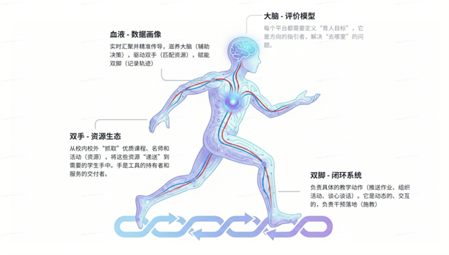 海亮科服正致力于将源于教育、深耕场景的独特基因转化为基础教育全场景、全链路的“因材施教四域融合育人模型”,真正以“学生成长”为中心跨域协同,既避免了“为技术而技术”的形式化应用,又解决了传统教育“经验驱动”的粗放问题,成为新质生产力在教育领域的典型实践标杆。