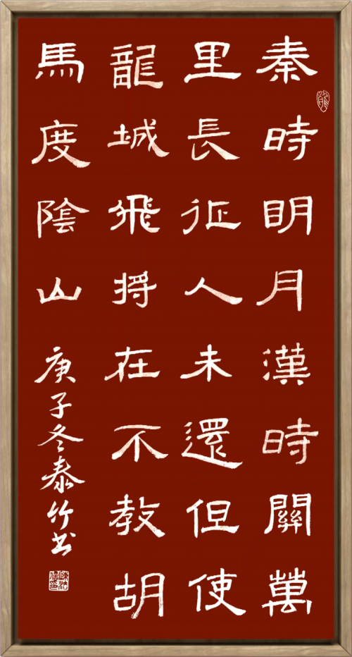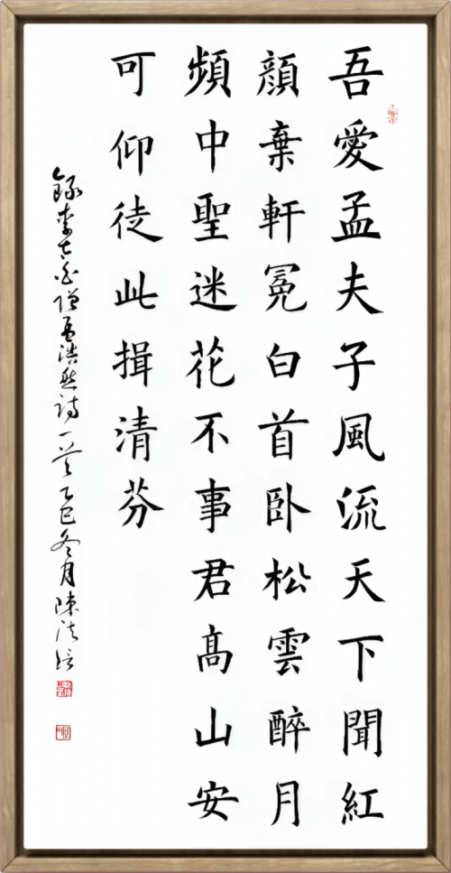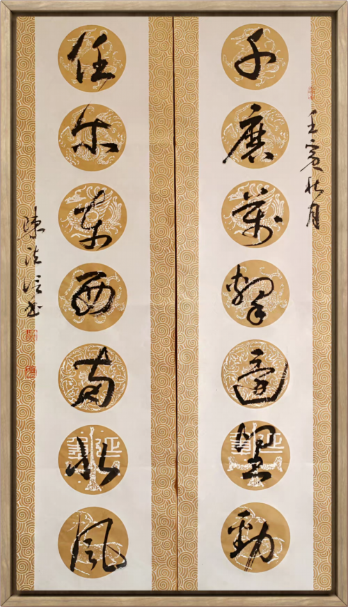 陈法信艺术风格的成熟呈现出鲜明的跨界融合特征。观其作品,最引人注目的是理性结构与感性表达的有机统一。他的楷书结体严谨而不失灵动,行草书奔放中见法度,这种艺术效果源于他将管理思维与艺术直觉的创造性结合。在笔法上,他注重"意在笔先"的构思过程,强调创作前的整体布局;在章法上,他善于运用对比与平衡的原则,使作品形成富有张力的视觉效果;在墨法上,他追求变化中的统一,体现出对"度"的精准把握。这种独特的艺术语言,使他的作品既保持了传统书法的文化底蕴,又融入了现代审美意识。2012年作品在法国卢浮宫展出,2018年赴泰国参加"一带一路"文化交流展,表明其艺术已经获得国际视野的关注与认可。
