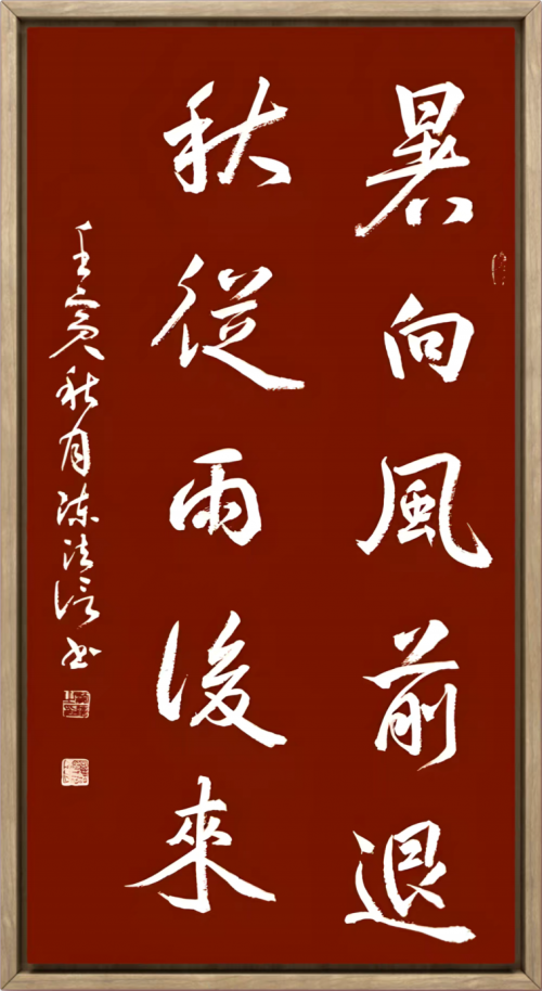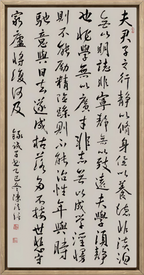陈法信书法艺术的关键转折发生在新世纪初期。随着在企业管理领域的成熟,他开始有意识地回归艺术追求,这一时期的显著特点是他对书法学习的"项目管理"式规划。与一般书法爱好者不同,他以企业家的战略思维规划自己的艺术进阶之路:先后参加清华大学当代书法名家导师高研班、中书协书培中心行草班、隶书班等专业培训,系统接受刘洪彪、张旭光、王厚祥等二十余位书画名家的指导。这种高强度、系统化的专业训练,使他在较短时间内完成了从书法爱好者到专业创作者的转变。尤为难得的是,他能够将管理实践中的资源整合能力转化为艺术学习中的多元吸收策略,打破门派之见,博采众家之长。2009年至2012年间,他先后获得中国硬笔书法协会"硬笔书法艺术提名奖"、入选江苏省第八届新人书法篆刻展、加入江苏省书法家协会,标志着其书法艺术得到专业认可。