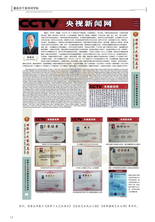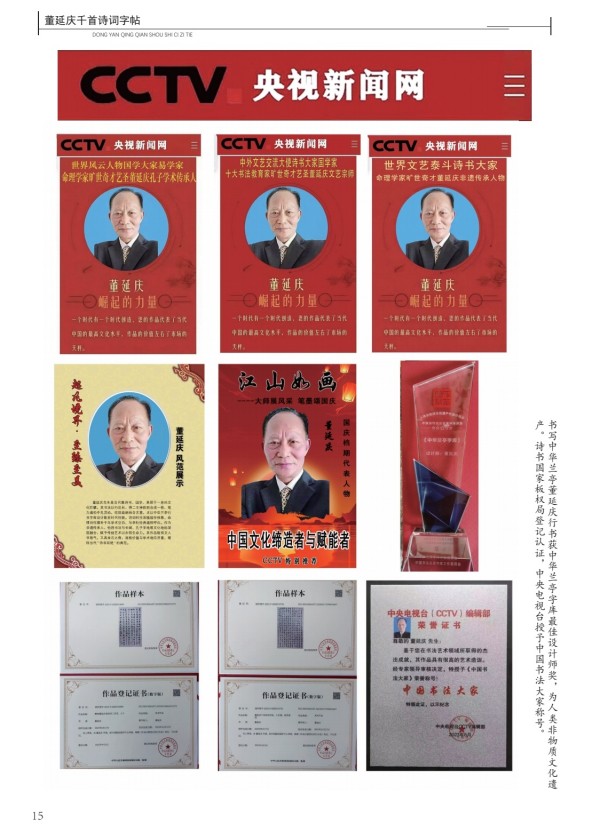 董延庆百首诗词碑林,诗书,命理诗三百首被联合国教科文组织评为国际艺壇领袖称号,任哈佛大学常春藤名校联盟名誉顾问。