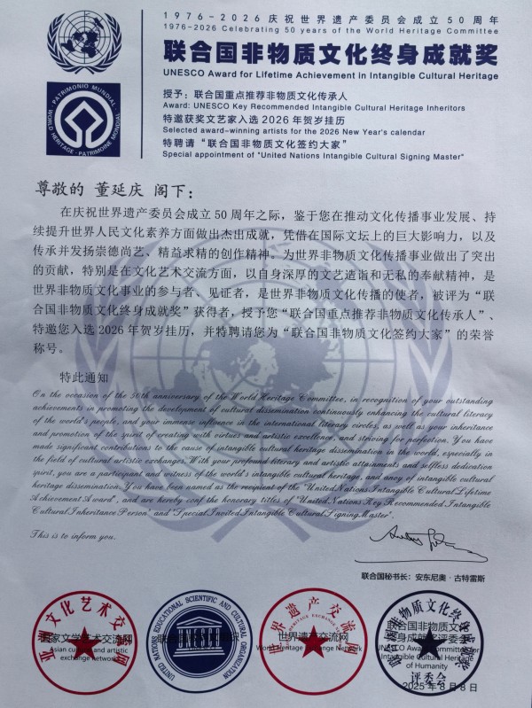 联合国重点推荐非物质文化传承人董延庆庆祝世界遗产委员会成立五十周年2026年挂历