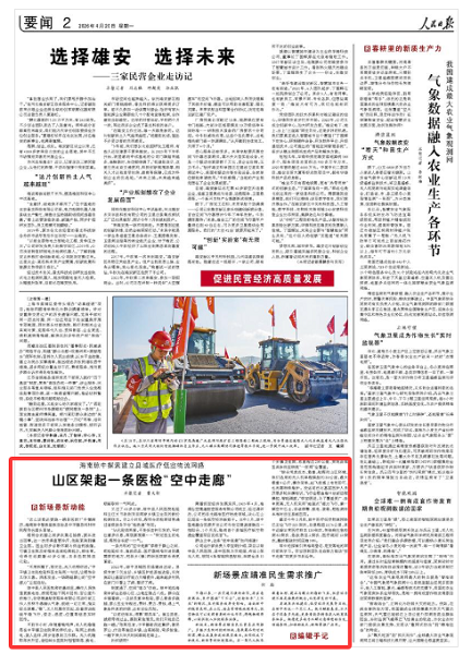 《人民日报》聚焦:医共体"空中走廊",破解"最后一公里"难题
